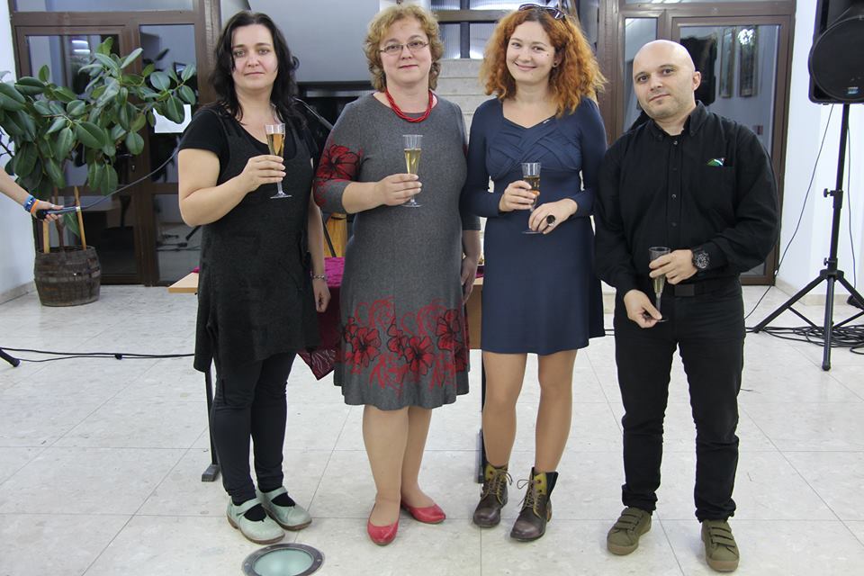 Koccintás díjátadás után: Kerekes Edit, Rácz Éva, Kurta Kinga, Kacsó Tibor a székelyhídi múzeumban